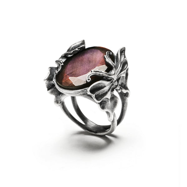 Eclipse Ring. Datura Luna Moths & Purple Labradorite Ring. Size 6.25