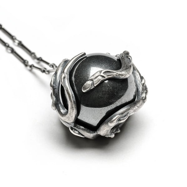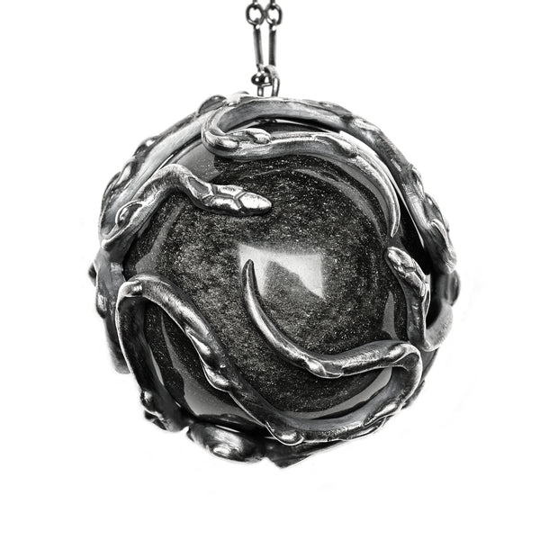 Grief Snake Heart. Silver Sheen Obsidian. Necklace. * Limited *