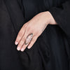 Available from the Vault from our Elysium collection : Delicate life cast bat bones have been carefully manipulated create this unique ring that cradles a stunningly large marquis cut Rose Quartz. These are the very last of these gemstones we have in the studio and we don’t anticipate ever having them again.