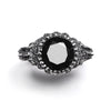 This ring is comprised of an antique setting manipulated with my beloved sparrow claws grasping each side, set with onyx. Cast in sterling silver, each ring is hand oxidized to achieve our shade of stormy gray and then highlighted to reveal the bright luminous silver beneath.