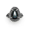 - Set with one 10 x 14 mm pear cut Rainbow Obsidian cabochon