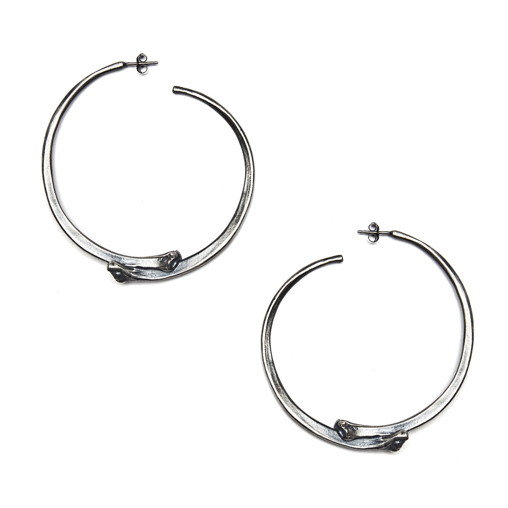 This listing is for one pair of Medusa Portals Redux oxidized to achieve our favorite shade of stormy gray and then hand finished to reveal the bright luminous silver highlights. Each earring comes with a sterling silver back.