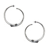 A pair of boa constrictor ribs have been re-assigned a new identity as sterling silver hoop earrings. The molding of the real rib captured every small detail of the natural shape, and texture of the bones.