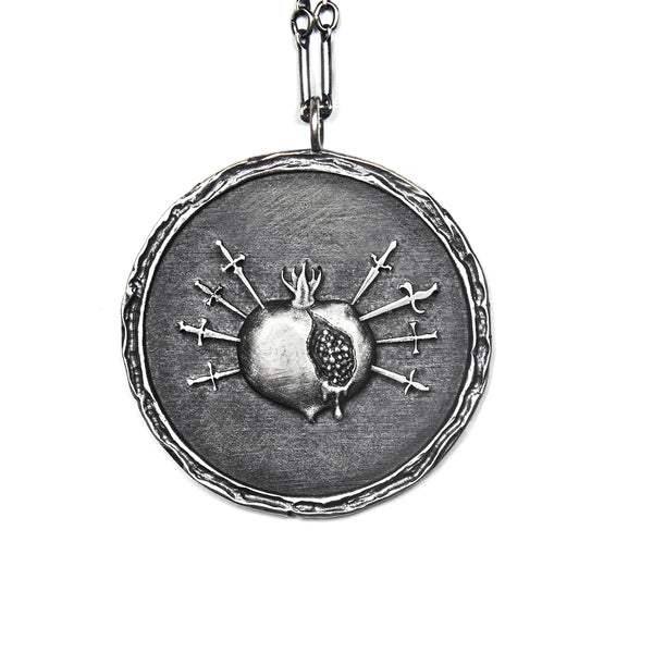 As a jewel of mourning and remembrance, I’m suggesting honoring your grief with a touch of sweetness, which can mean: remembering a happy memory in a moment of intense sadness, or any other practice you may have that can be couple with the tactile nature of this coin pendant.