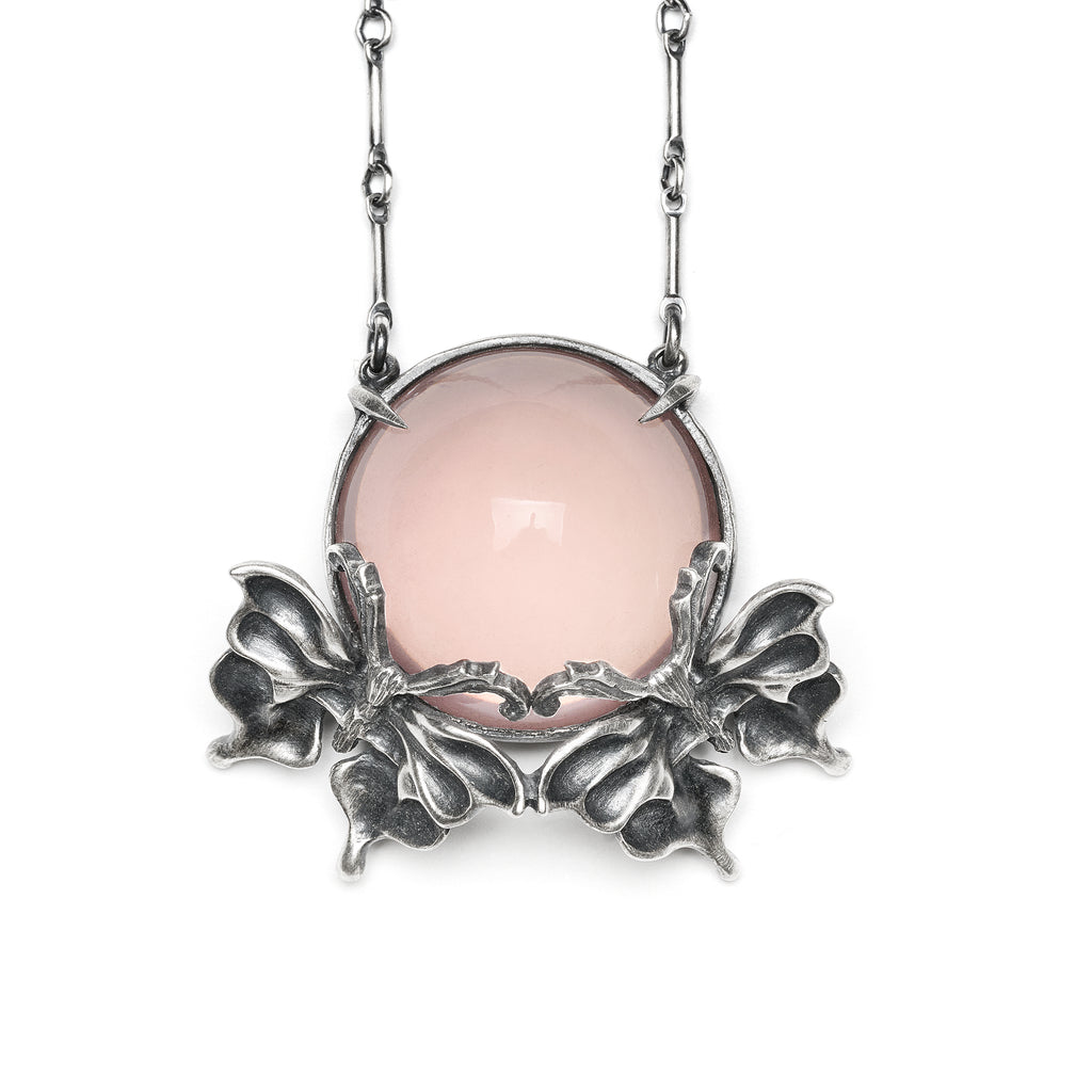 Eclipse. Conjoined Datura Moths. Rose Quartz. Necklace.