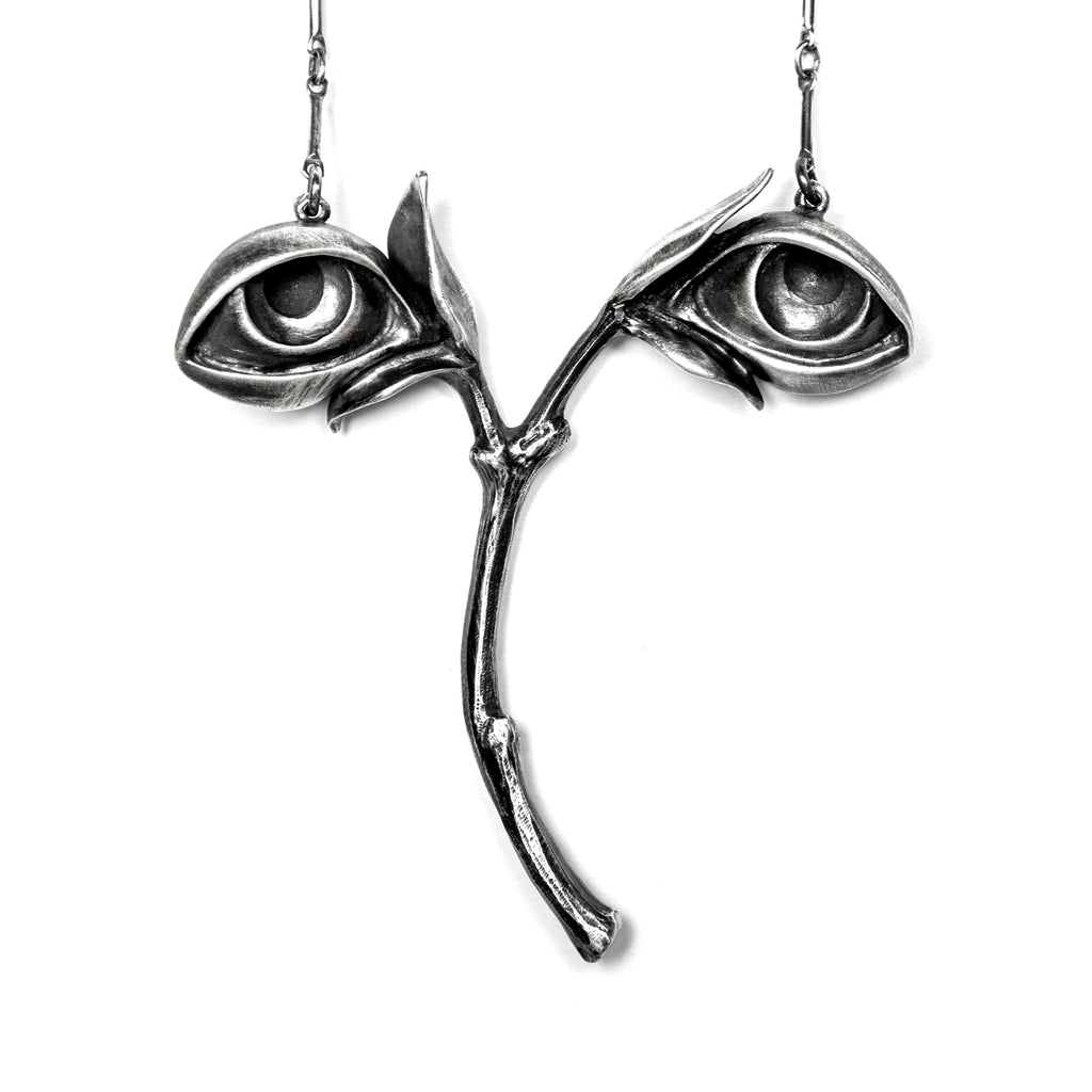 This listing is for one Eyes of Saint Lucy pendant paired with the chain length of your choosing. Pendant, chain, and closure are all Sterling Silver, hand oxidized to achieve our shade of stormy gray and then highlighted to reveal the bright luminous silver beneath.