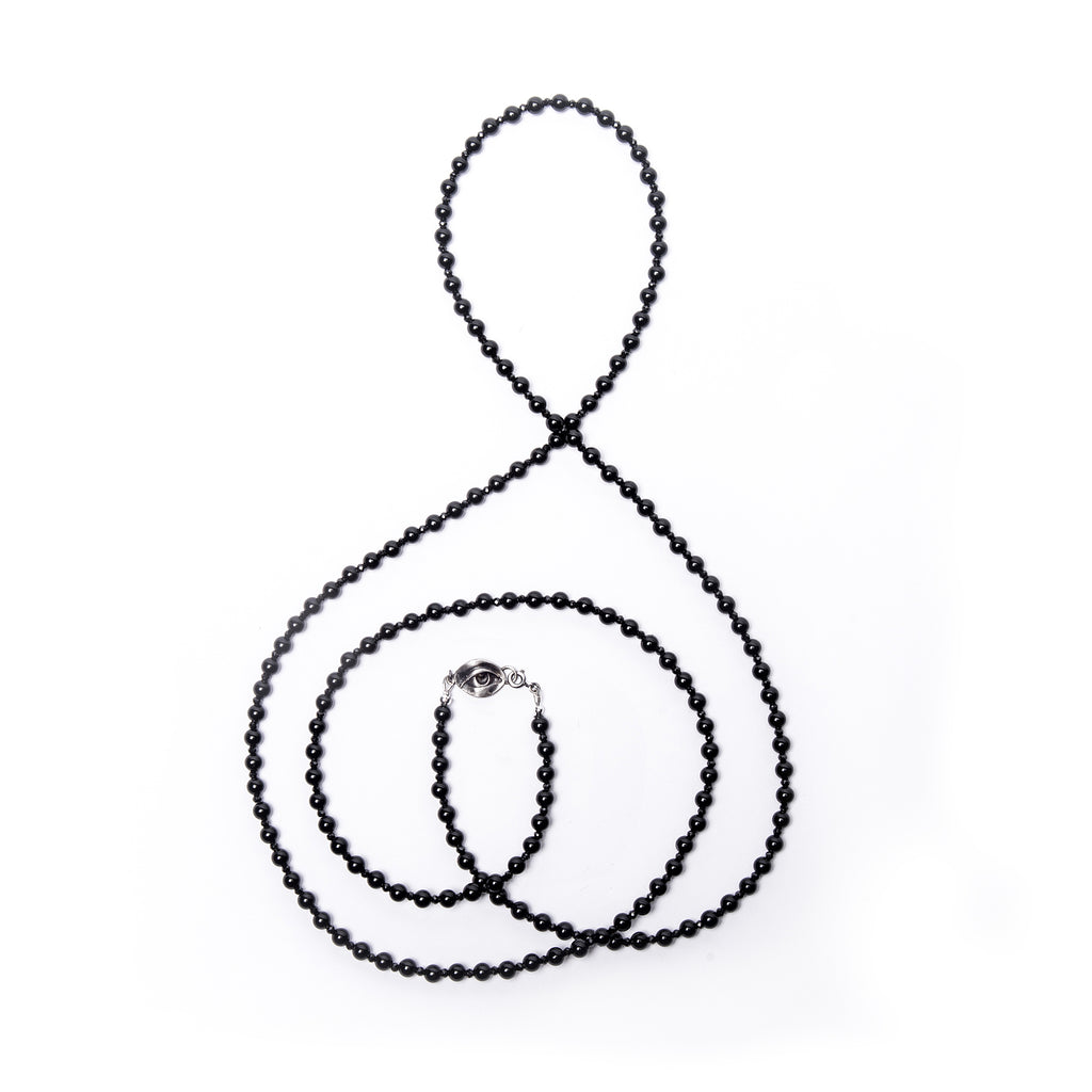 38" long from end to end, this 'Opera Length' makes it perfect for wearing doubled up as well as at its full length. Designed to compliment other Onyx jewels in the Mourning/Ritual bead line it also layers beautifully with other BloodMilk necklaces. Its light weight also makes it perfect to use for meditation or ritual practices.