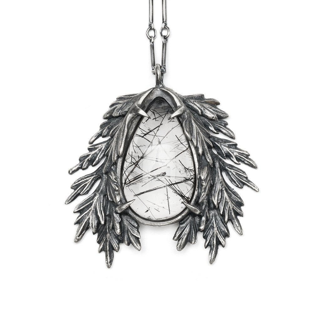 Mugwort Sprigs. Tourmalated Quartz Necklace.
