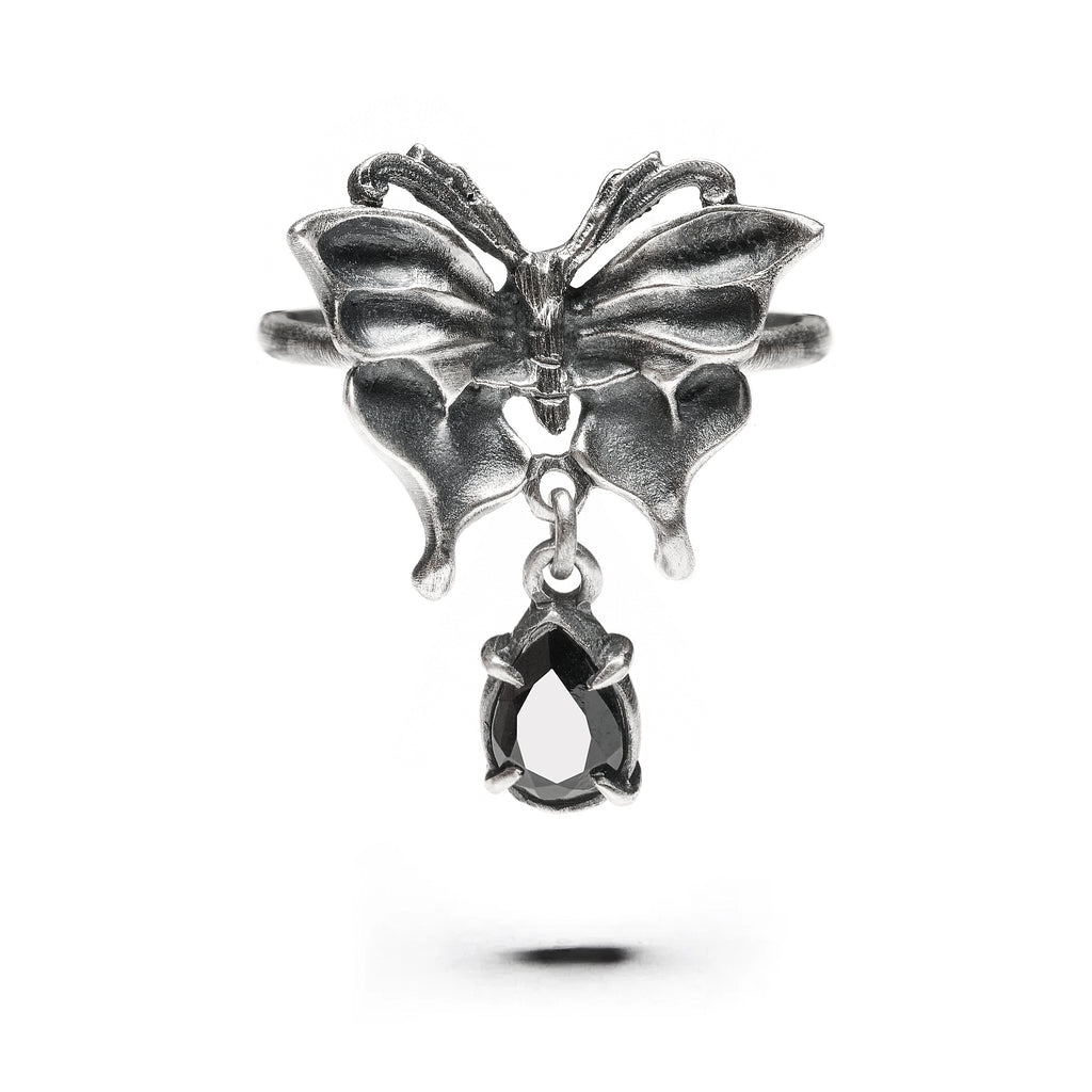 Inspired by how moths use transverse orientation when they fly, which is an internal navigation system that keeps them in alignment with the moon as a source of bright celestial light. This helps keep their flight patterns straight and consistent, much like how humans use the North Star for navigation. Due to the introduction of artificial lights by humans, moths have been observed flying in spiral patterns. While these spiral patterns are unique and interesting, this disruption has caused a decline in their population and is called the "death spiral". Here, the little gemstone "tear" represents both the grief of this loss, ( & a stand in for any grief you may be carrying or need assistance carrying ) as well as a little light the moth is carrying all its own, its very own North Star.