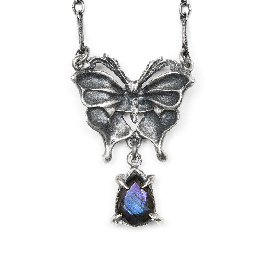 Petite Datura Moth. Purple Labradorite Necklace. * Limited *
