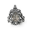 Bats and their cast wing and leg bones have long been a component I’ve used in my visual library as a way of creating a personal visual language. As nocturnal creatures, I feel a kinship with their natural predilection for the night time hours, but I’m also interested in how they use sonar to ‘see’, how as a metaphor bats as liminal creatures also remind us to look closer with our other senses, a way of ‘seeing the unseen.’ It’s my hope and intention that pairing them with other chthonic imagery and myth further adds to the visual meaning I’m aiming for, creating a collage of personal ideas while also tethering these physical jeweled objects to the spirit of the bat ( and other natural objects in the case of other jewels in my collection ) and to the spirit of the myths I’m invoking.