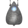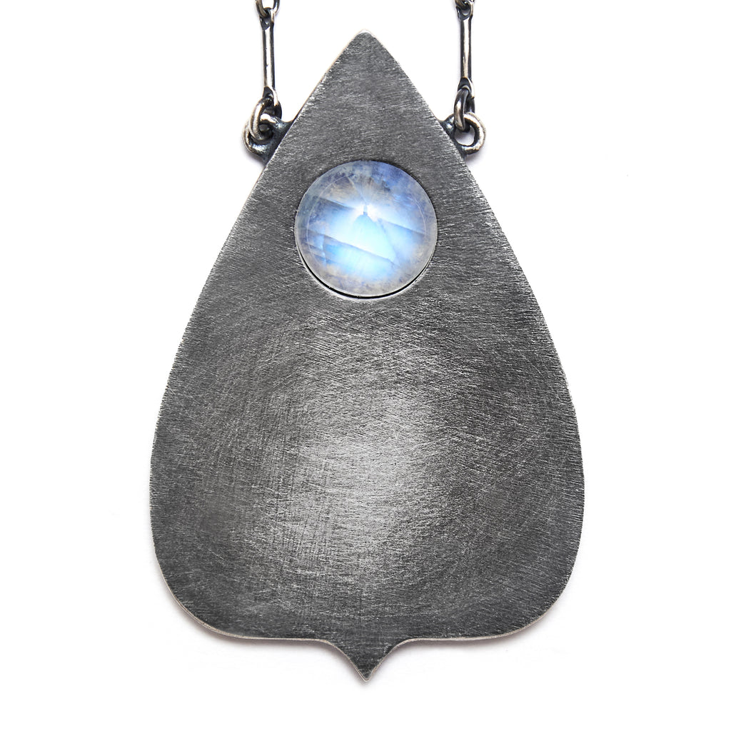 This listing is for our largest planchette necklace, set with a moonstone cabochon and paired with the chain length of your choosing.