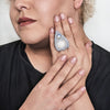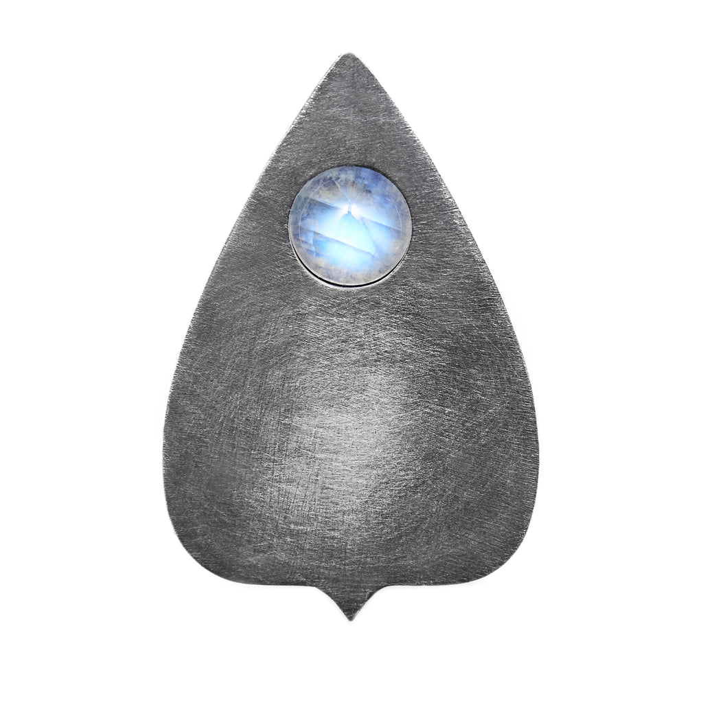 This listing is for our largest planchette ring, set with a moonstone cabochon in the size of your choosing.
