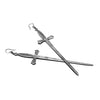 2 Swords, cast immortal in sterling silver & oxidized to a graduated gloomy gray from an antique freemason piece, hang against the throat of their wearer. Tendrils of the intricate details from the original were preserved in the mold, nicely contrasting with the elongated yet dangerous shape of the swords.