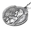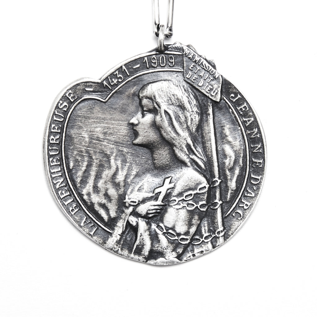 This listing is for one Our Lady of Fire pendant on our signature bar link chain. Both pendant and chain are sterling silver, hand oxidized to achieve our favorite shade of stormy gray and then highlighted to reveal the bright luminous silver beneath.