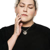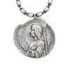This listing is for one Our Lady of Fire pendant with your choice of either our signature bar link chain or our new 'Rosary' style chain which features oval "beads" linked together. Both pendant and chain are sterling silver, hand oxidized to achieve our favorite shade of stormy gray and then carefully burnished to reveal the bright luminous silver beneath.