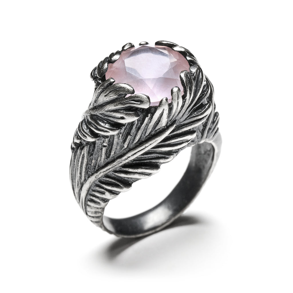 Personally, I've struggled both with writing about Rose Quartz as well as pairing it with my jewelry. It's a stone that has long been deeply connected with the romantic aspects of love, healing, forgiveness, beauty and well-being - but for me, I've shied away or have had discomfort with each of these notions and descriptors. Each of them has also been, for me, tangled up with grief and death - shadow feelings. However, while I think Rose Quartz often lacks its shadow in popular descriptions of it - I think it's powerful for these exact reasons. As much as it is beautiful, it is often turned to as a balm during our worst moments - the ugly and horrific times of heart brokenness; representing our hearts in all their nuance - capable of the beauty of love but also the madness of loss. In this way, it illustrates the tensions between beauty and horror I unconsciously & consciously seek in everything. It is a phoenix, burning down like the Tower into ashes but also comforts us while we rise from the rubble. It is a fierce shield that guards us, but it is also has a soothing gentleness. In this way each Rose Quartz jewel carries a dual aspect of 'psychic armor' both the energies and medicines of the snakes and bats that form the gloomy silver settings of the jewels, and Rose Quartz, a beautiful balm that assists us during our darkness moments, a reminder of the sweet-bitterness of being alive on this timeline.’