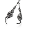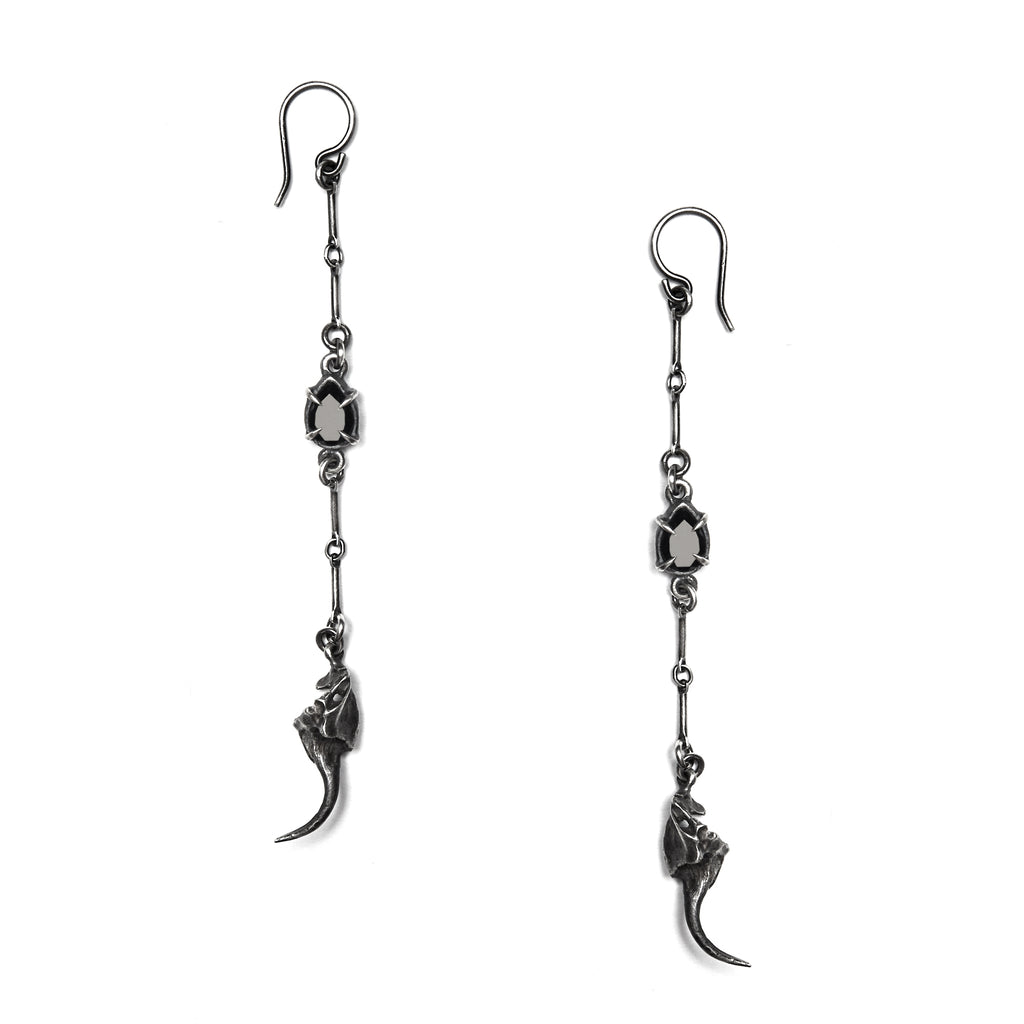 A pair of rattlesnake fangs are cast immortal and dangle at the jawline. As the seat of the rattlesnake's physical defense, these earrings invoke the powerful, albeit dangerous aspects of the snake, a physical symbol of self-reliant power and small talismans of protection.