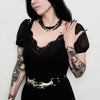 There's a scene in the movie 'Frida' where an older woman is singing 'La Llorna' ( The Weeping Woman ) to Salma Hayek ( who is playing Frida Kahlo. ) It's a heart-breaking scene to begin with, in the film, Frida is mourning the betrayal of her husband and is painting her famous ' The Two Fridas.' But one detail of this scene, and the actual genesis of this necklace which I've never talked about until now, is that the woman singing to Salma/Frida, is Chavela Vargas. Chavela knew Frida in real life, had actually lived with her and Diego and most likely had a love affair with her. This adds so much more poignancy and to me, real grief to this scene and serenade. Every time I listen to the soundtrack or watch this scene I get a felt sense in my body. Not only for my love of Frida Kahlo's work, but for the grief I feel for people I've lost. I made this strand for that, to help carry the weight of my grief. & it is quite literally, one of the heaviest strands we've made, so please keep that in mind when ordering.