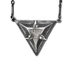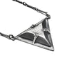 A triangular crystal was cast in sterling silver and retains all its lovely facets, acting as the gem of the piece, cradled by three tiny mouse bones, acting as prongs.