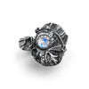 This ring is cast in sterling silver, hand oxidized to achieve our favorite shade of stormy gray, and then finished to highlight the bright luminous silver beneath.