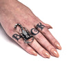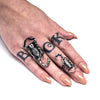 Often feared with venom strong enough in some species to mortally poison man, this Scorpion acts as a protective talisman and also a talisman of transformation. As an added layer of meaning: Scorpion also speaks to the Shadow Self of Carl Jung’s ideas on ‘Inner Alchemy’. Its ability to transform, its destructive and links to the underworld ( realm of shades and shadows) underline the idea of the Shadow; which is seen as the repressed, unwanted or unaccepted parts of oneself. ‘Darkling, I Listen’ is a collection of jewels urging the wearer to move towards self-acceptance through the jewels as talismans. The process of individuation or transmutation is the process of becoming ‘whole’. For Jung, this didn’t mean becoming ‘good’, but becoming complete in the sense that one accepts all of their unconscious ‘faults’ as well as their experiences (their pasts) to become whole or complete. In ‘Inner Alchemy’ each phase of the alchemical process from antiquity was re-assigned new meanings: i.e. the quest for the philosopher's stone is truly a quest to become whole. In the 'Nigredo' process, everything is blackened, putrefied, 'killed' in a sense, to allow for new growth. It is during this phase in 'Inner Alchemy' that we are confronted with the knowledge our darker aspects, a phase in which we must accept our shadow selves. When we accept and acknowledge our more shadowy aspects, the parts of ourselves we have been conditioned to suppress, the parts of ourselves we hide from others as well as ourselves, we are on the path to wholeness. We become more accepting of our flaws, our darknesses. Having struggled with my own shadow self for many years, this talisman represents not only that long tangle with ‘darkness’, but our ability to become whole.