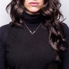 This pendant is 36mm wide and stands 26mm tall. The stone it holds is a 10mm square. Paired with our signature sterling silver bar link chain, oxidized to our gloomy grey finish, in the length of your choice 16", 18", 20" { photographed on Melissa and Sophi at 16" }