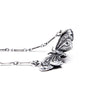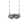 This listing is for one Alice moth pendant on our signature bar link chain in the length of your choosing. Both pendant and chain are sterling silver, hand oxidized to achieve our shade of stormy gray and then highlighted to reveal the bright luminous silver beneath.