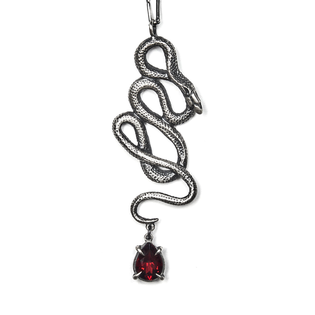 A single Garnet tear dangles from the tip of the tail, representing the more melancholy depictions of Medusa.