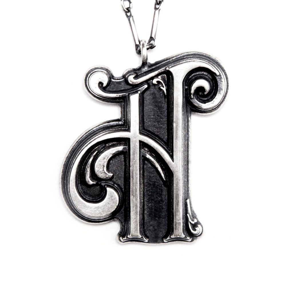 Our Illuminated Alphabet collection follows in this ancient tradition of crafting ornate letters in luminous sterling silver. This series was created in homage to my husband Aaron Horkey and his amazing hand lettering talents. Each letter was based directly off a drawing Aaron has drawn by hand, in the way of the ancient artists who illuminated manuscripts: with dedication, precision and an eye for beauty.