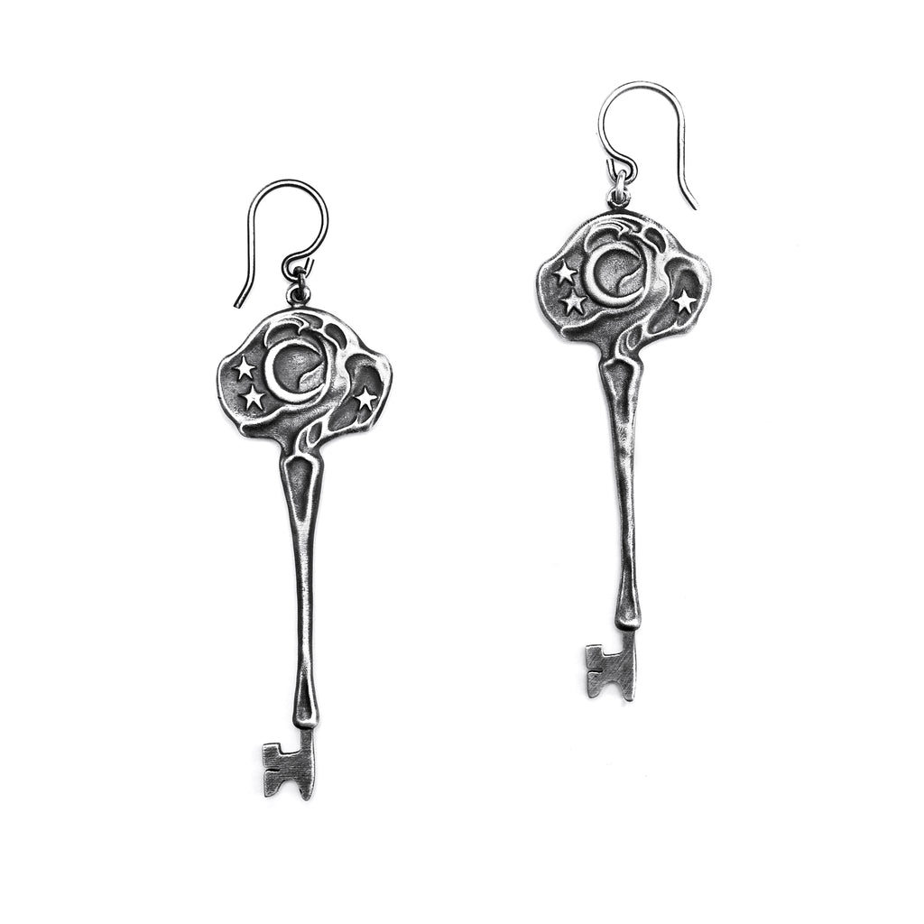 Skeleton keys have long been an obsession of mine. My godmother is an auctioneer and took me along to auctions and estate sales. Treasure for me were always the wooden boxes filled with greasy and dirt caked keys, beautiful with their time earned patina, with their memories and silent stories. She has gifted me special ones over time; one I wore for many years around my neck and one especially meaningful Art Deco one I used as a size and design reference for this collection. As a kid, I imagined every beautiful key I came across no matter how small or large, belonged to a haunted house. Even the tiny keys that came with my school fair diary were special to me. Keys have that sort of resiliency that many other sorts of old objects don’t, they survive the wear and tear of misuse, they surface like relics from the muck of time.