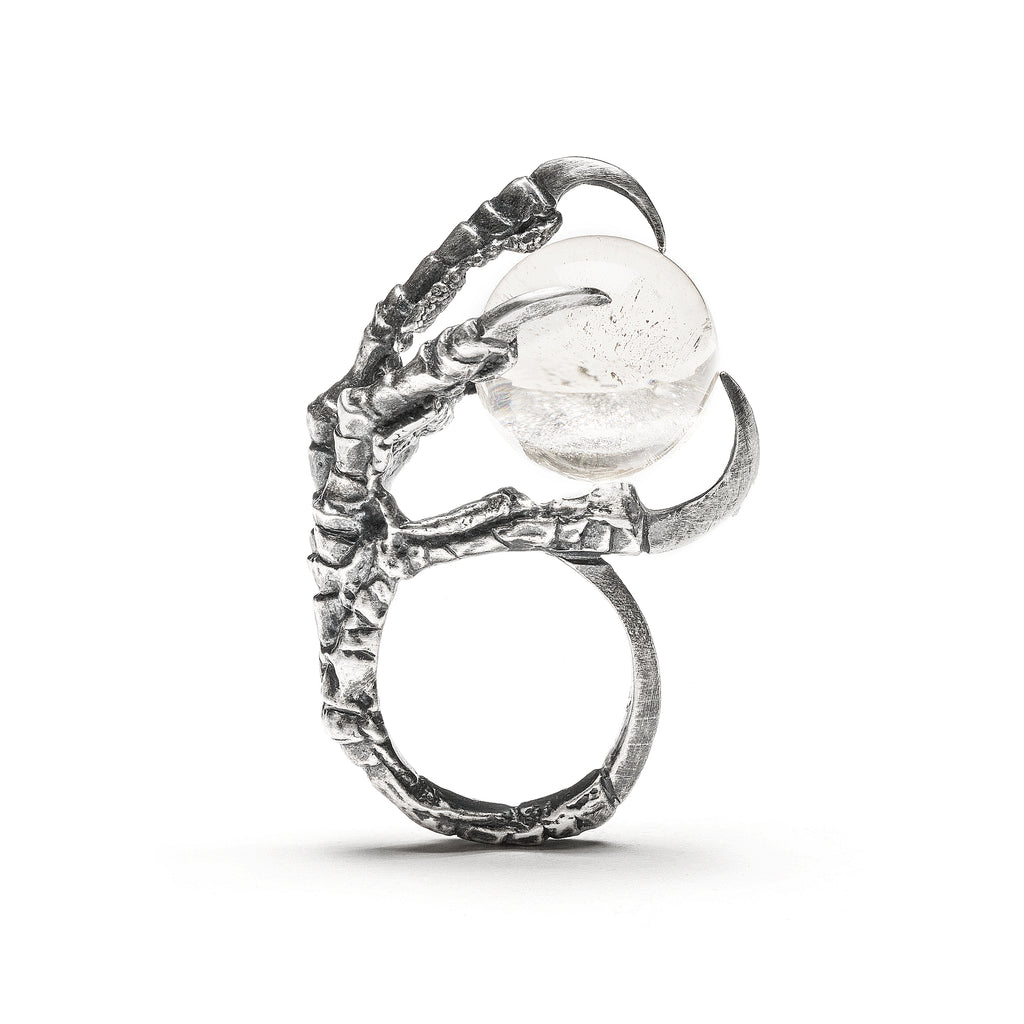 Pulled from the Vault, one of my earliest designs returns: a life cast crow claw cradles a clear quartz sphere.