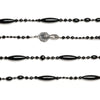 Inspired by antique Victorian Mourning strands, this offering features a marriage between differently shaped and textured Onyx beads and hollow sterling silver “pearls”.