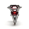- Set with one 10 mm and two 7 mm fine cut hexagon Garnet gemstones