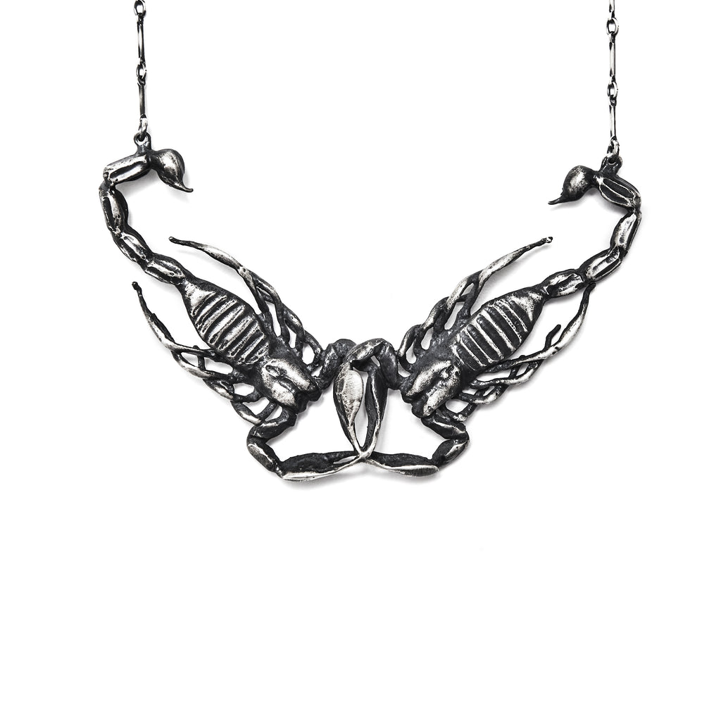 Mythically and associated with alchemy, it slays itself with its own 'dart' and brings itself back to life, reminding me of another creature that does likewise, the Phoenix. This dual natured balance of life and death, of destruction and healing is a visual metaphor I was going for in this talismanic vessel, where two conjoined scorpions are locked in an eternal embrace of the mysteries of life and death, of letting go and becoming, the ultimate transformative energies at work to be work close to the body and above the heart.
