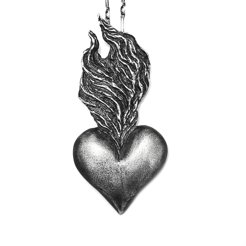 This listing is for our largest flaming heart pendant on our signature bar link chain. This version features a hidden bail on the back of the pendant, making it more comfortable for wearing at a longer length. If you are interested in a shorter version please see our listing for the { short length } version HERE.