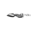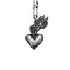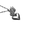 This listing is for our smallest flaming heart pendant on our signature bar link chain in the length of your choosing. Both pendant and chain are sterling silver, hand oxidized to achieve our favorite shade of stormy gray and then highlighted to reveal the bright luminous silver beneath.