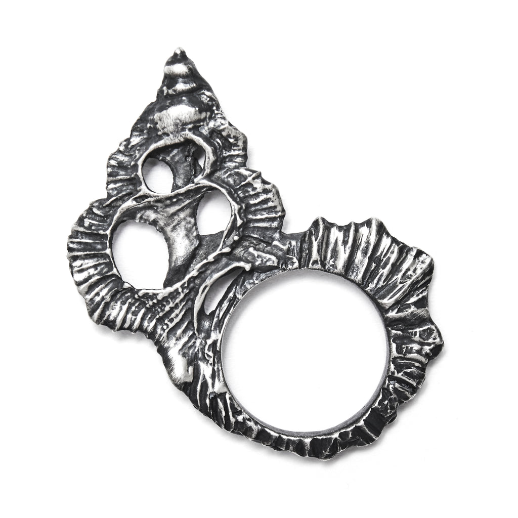 Based on the 'Sea Witch' from Hans Christian Anderson's 'The Little Mermaid', this ring features a manipulated shell skeleton, cast from a slice of a real shell. retaining all the details of the original, its odd shape stands high off the finger, simulating a kind of dark, organic weapon.