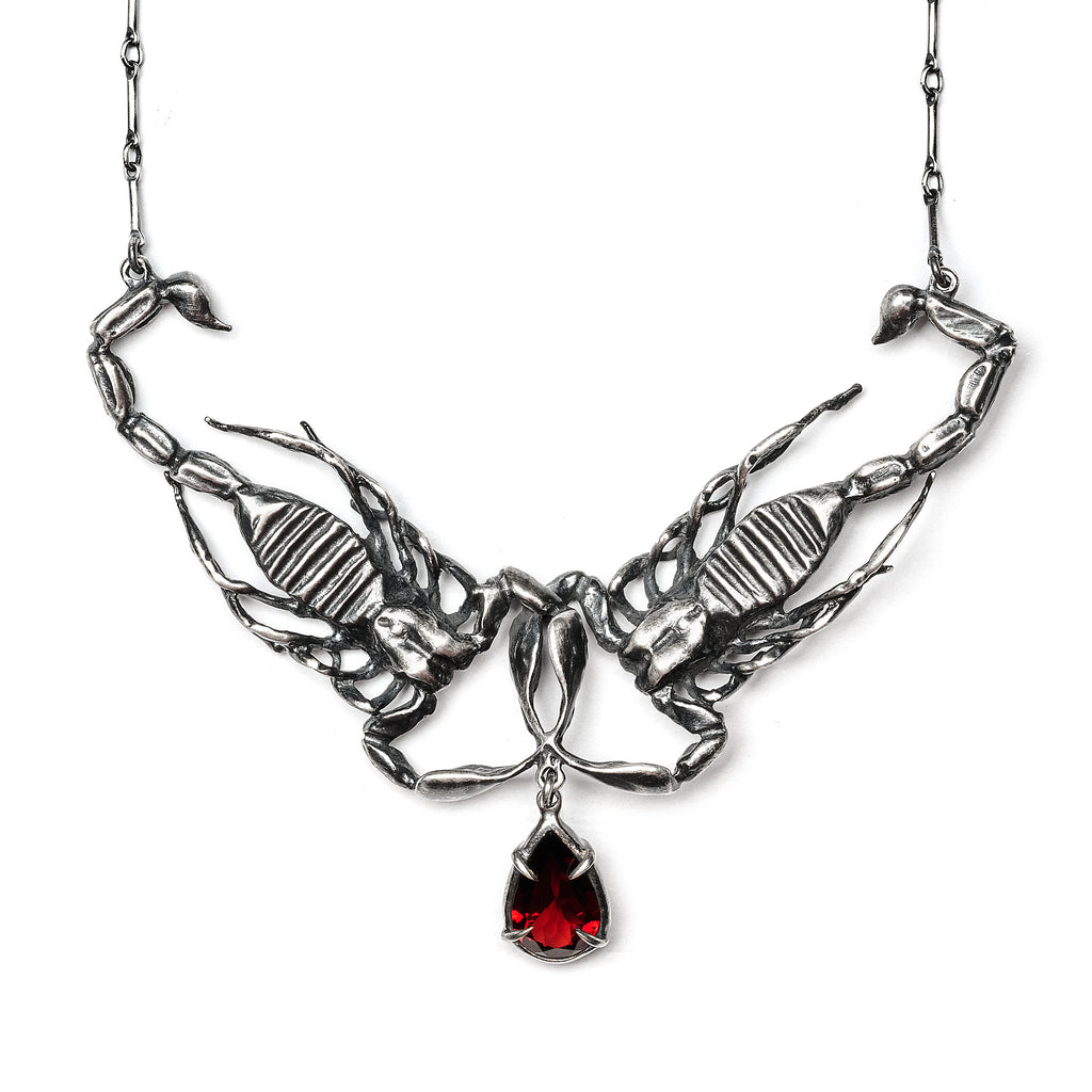 The Tear Collectors. Medium Conjoined Scorpions with Garnet Tear. Necklace. * Limited *