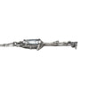- Set with one 8 x 17 mm pear cut clear quartz gemstone