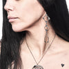 Bats and their cast wing and leg bones have long been a component I’ve used in my visual library as a way of creating a personal visual language. As nocturnal creatures, I feel a kinship with their natural predilection for the night time hours, but I’m also interested in how they use sonar to ‘see’, how as a metaphor bats as liminal creatures also remind us to look closer with our other senses, a way of ‘seeing the unseen.’ It’s my hope and intention that pairing them with other chthonic imagery and myth further adds to the visual meaning I’m aiming for, creating a collage of personal ideas while also tethering these physical jeweled objects to the spirit of the bat ( and other natural objects in the case of other jewels in my collection ) and to the spirit of the myths I’m invoking.