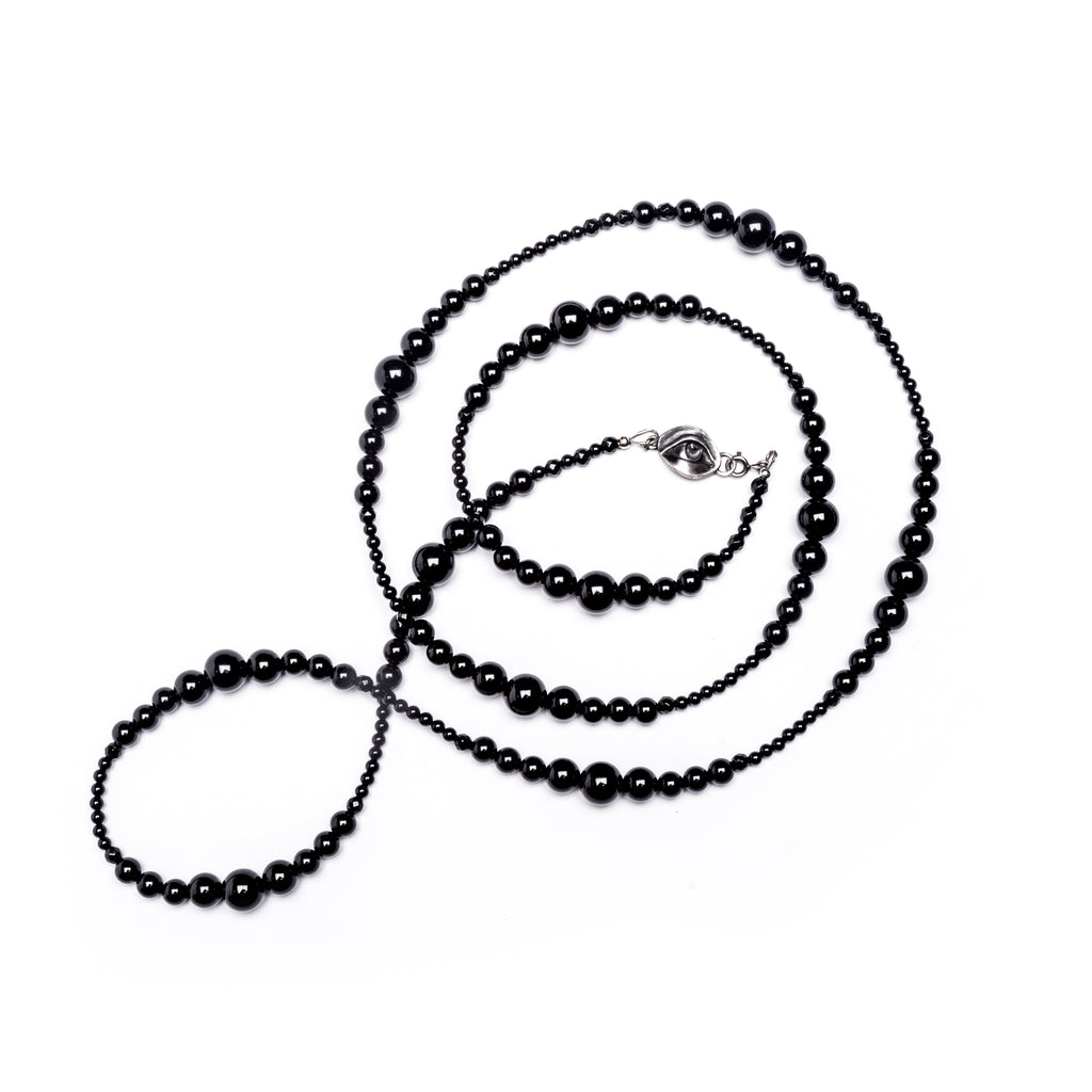 This 'Opera Length' makes it perfect for wearing doubled up as well as at its full length. Designed to compliment other jewels in the Mourning/Ritual bead line it also layers beautifully with other BloodMilk necklaces. Its length and varying bead sizes makes it perfect to use for meditation or ritual practices.