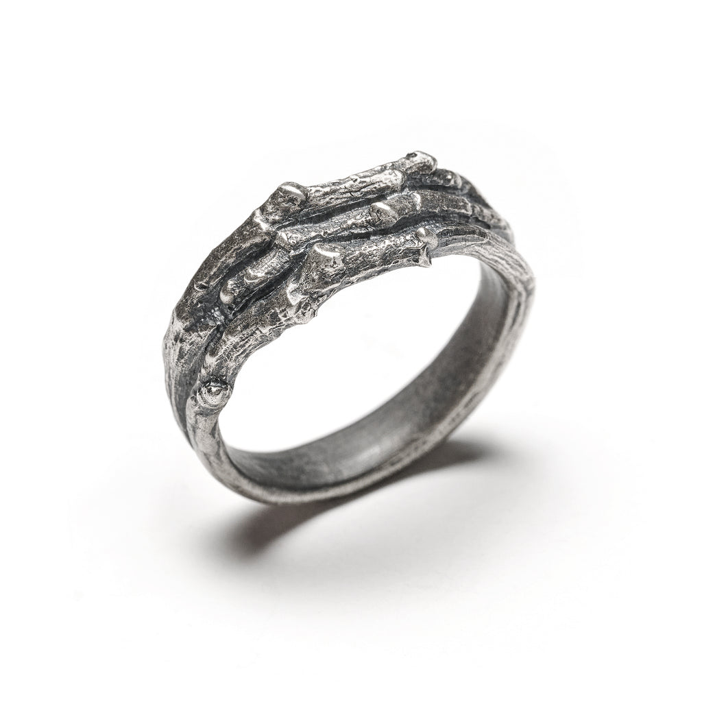 - Solid sterling silver: oxidized to achieve a stormy gray. Hand polished to reveal the luminous silver tones beneath.