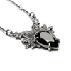 Inspired by the design elements of the Baroque and Neo-classical periods, this striking yet delicate necklace is named for the Ancient Greek God of the West wind, Zephyrus, features conjoined ornate 'wind gusts' cradling a stunning pear cut onyx. These calmer winds are also named for those that occur as a storm ends, and this petite line of jewels represent the transitions of life's ups and downs, just as raging storms ease to lighter rain and the parting of clouds that give way for sunshine to break through. It's difficult to know what treasures may be blown down towards us on gentle breezes, especially these days, but it's my hope that this jewel may be a talisman of hope for calmer weather in both our external and internal landscapes.